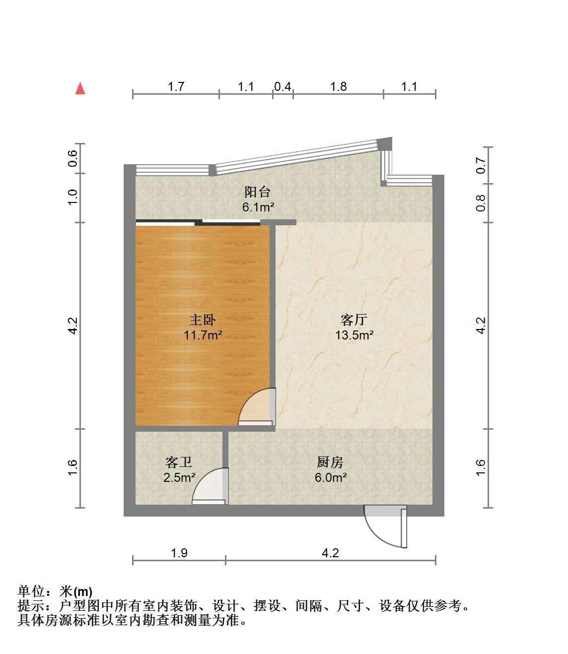 1室1厅1卫 面积55m²
