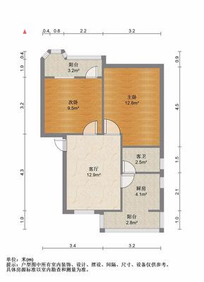 2室2厅1卫 面积65m²