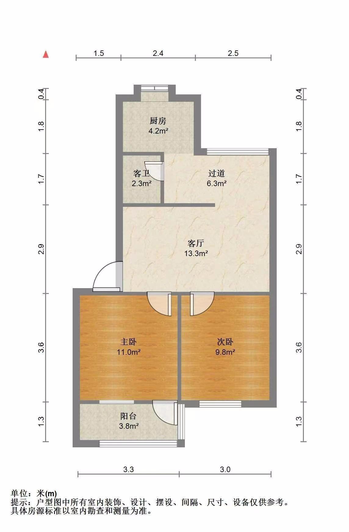 2室1厅1卫 面积57m²
