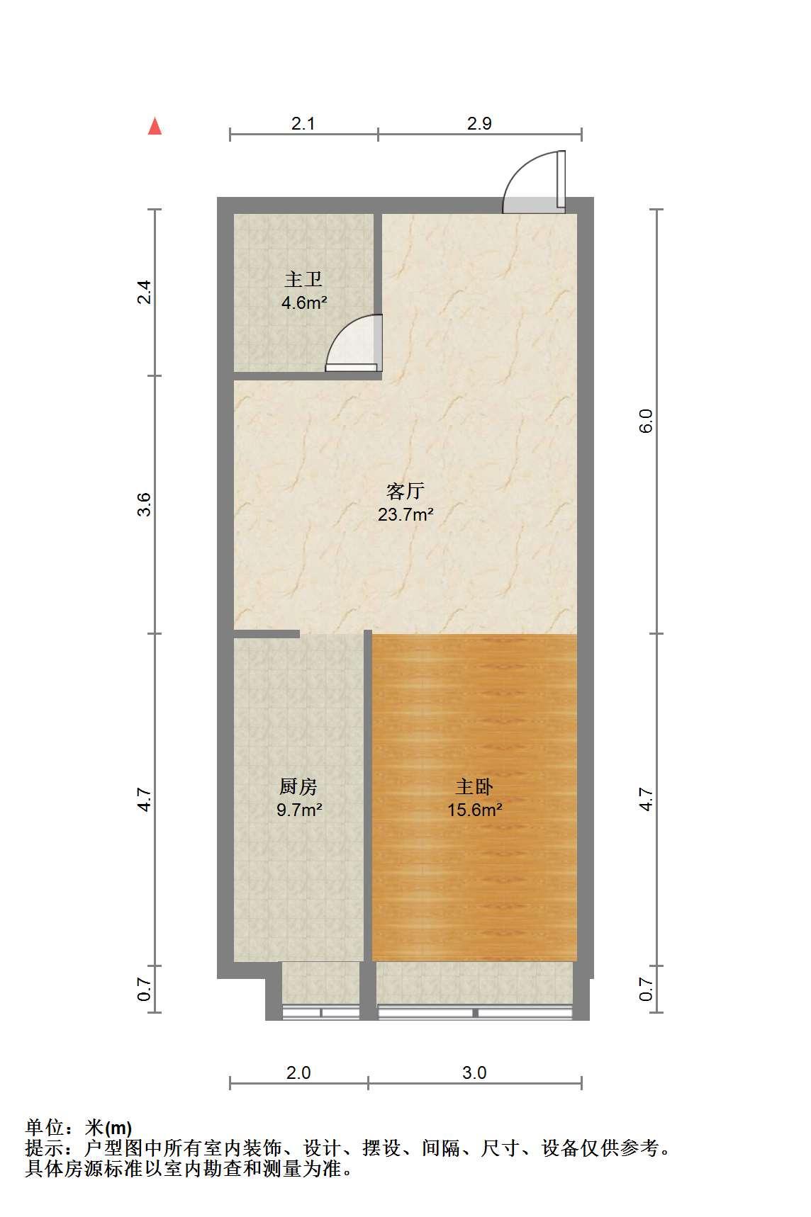 1室1厅1卫 面积61m² 1600元/月