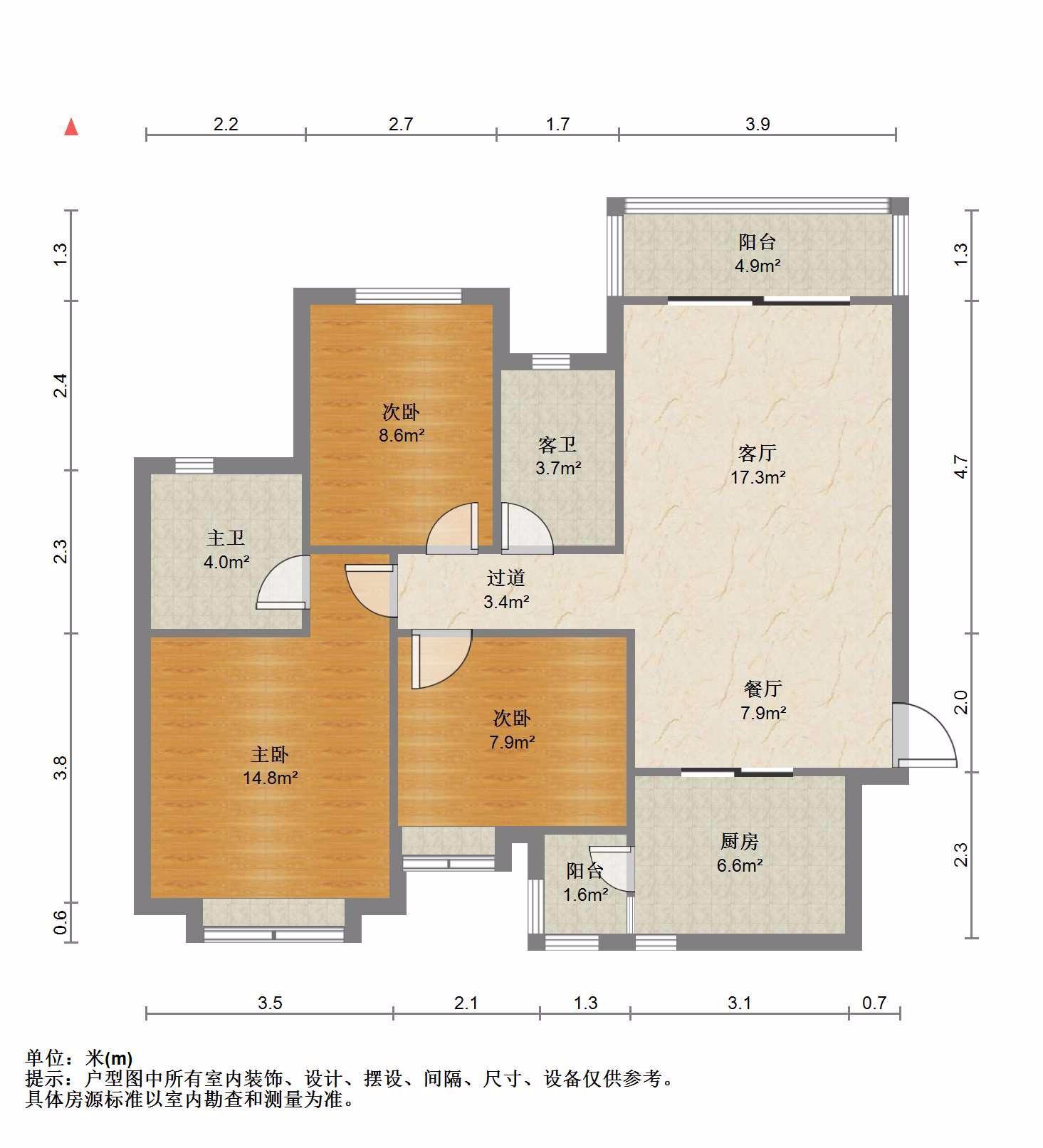3室2厅1卫 面积103m²