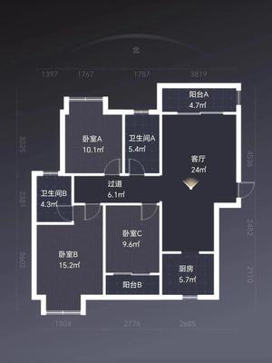 2室2厅2卫 面积89m² 1000元/月