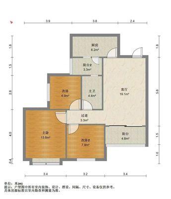 3室2厅1卫 面积103m²
