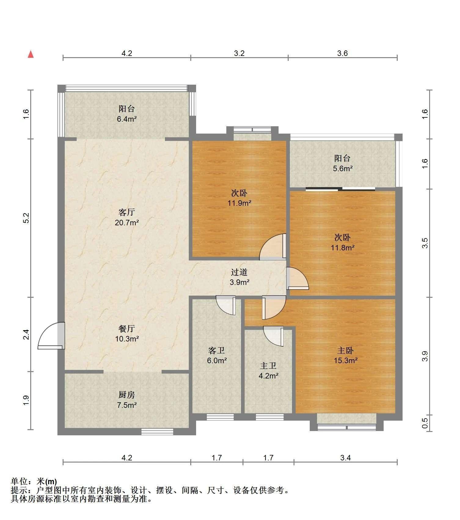 3室2厅2卫 面积109m²