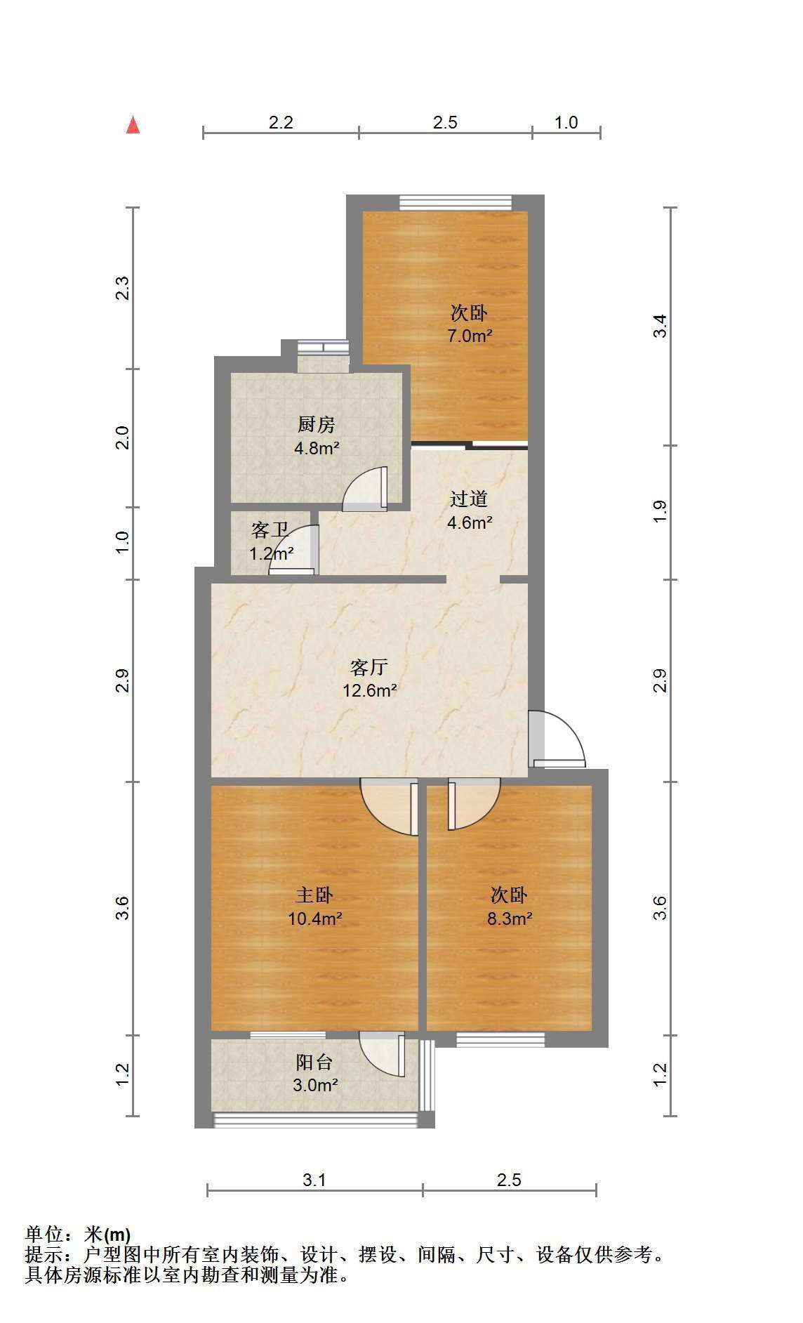 3室2厅1卫 面积96m²