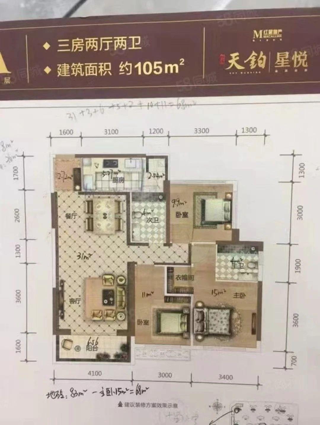 3室2厅2卫 面积105m²
