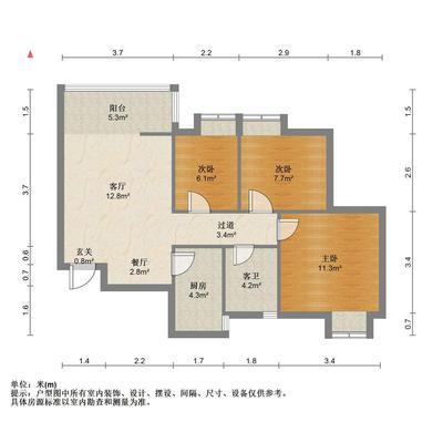2室2厅1卫 面积66m² 2300元/月