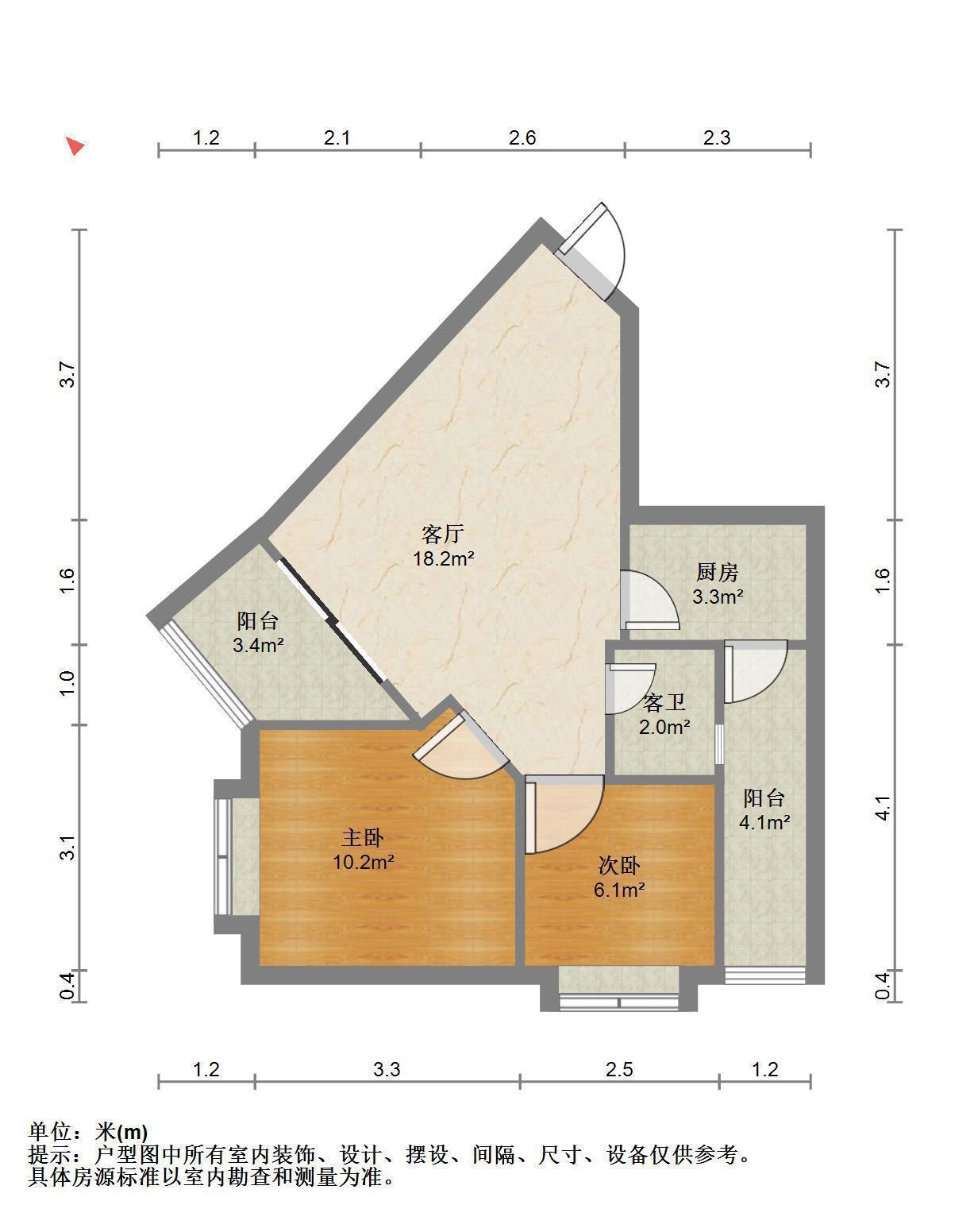 2室2厅1卫 面积68m²
