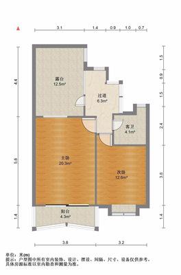 2室1厅1卫 面积62m² 2100元/月