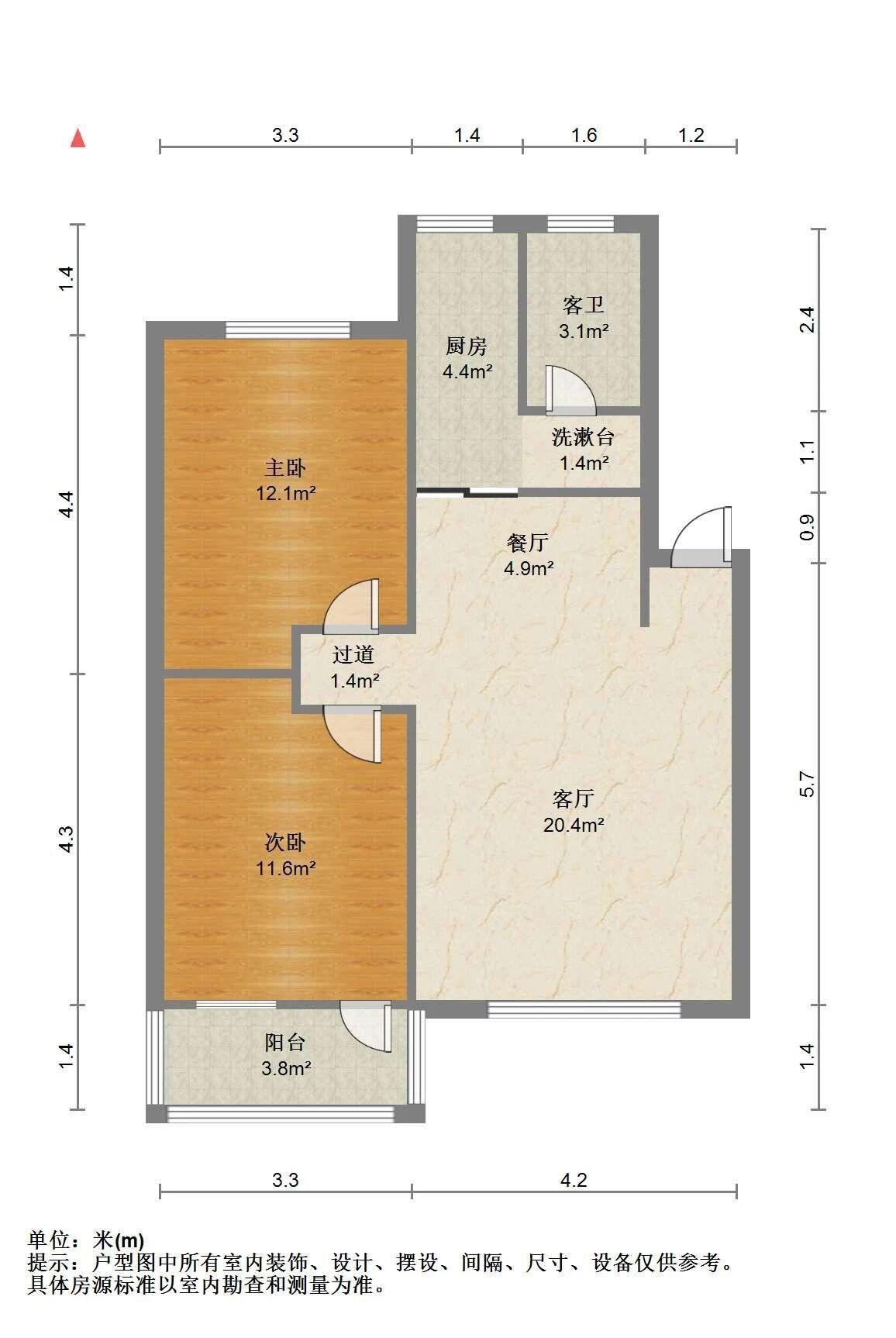 2室2厅1卫 面积84m²