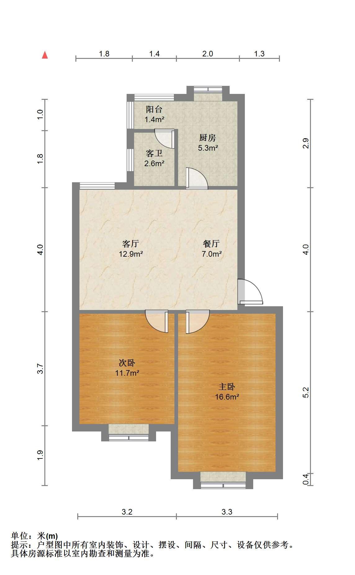 2室1厅1卫 面积65m²