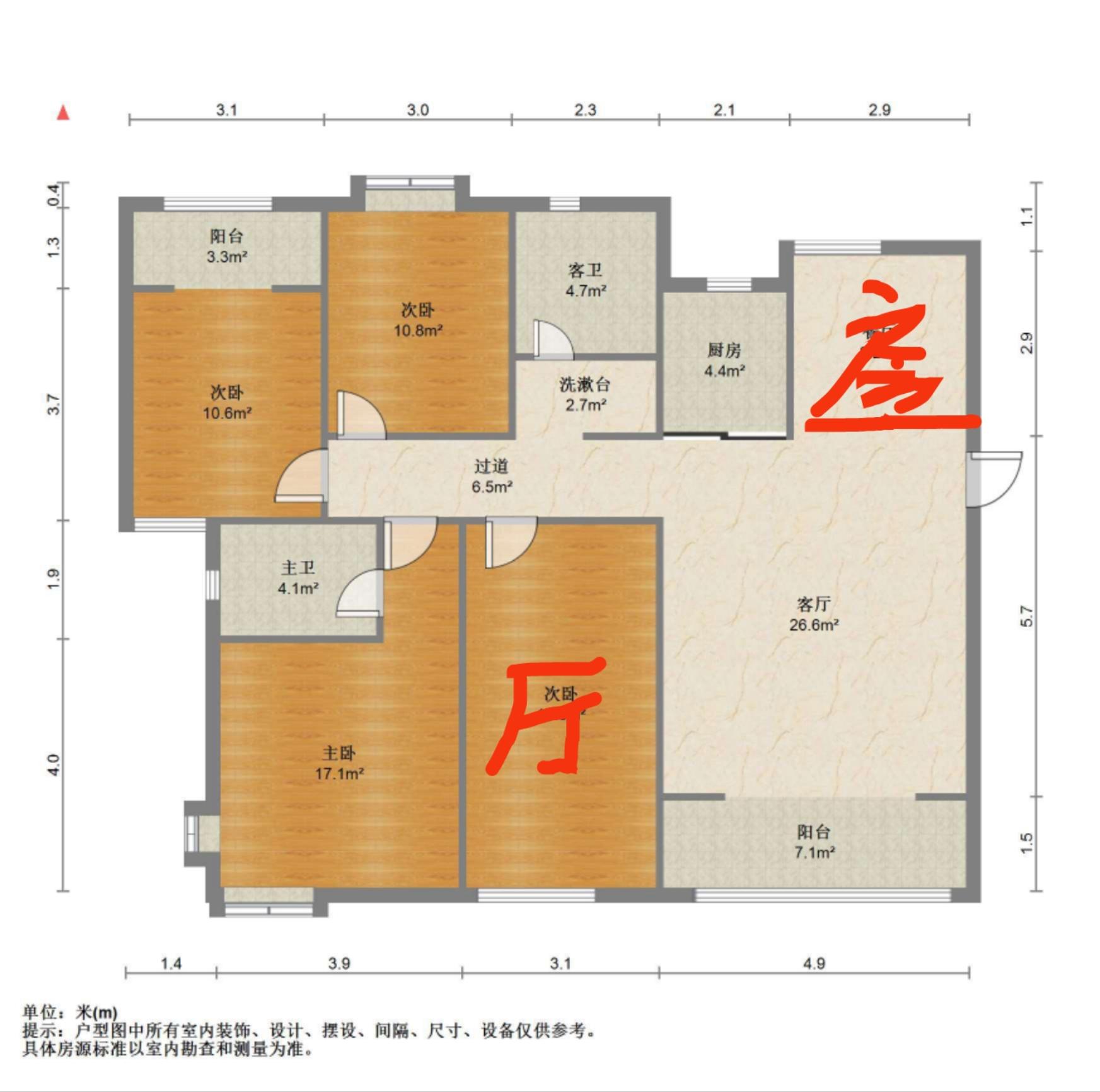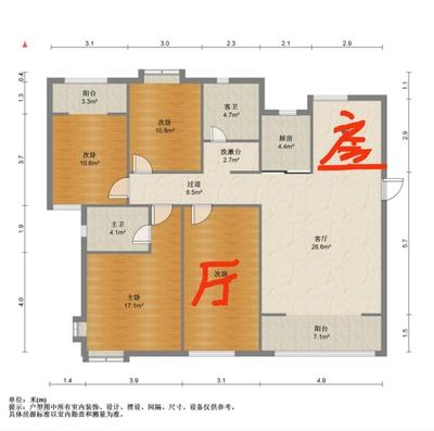 3室2厅2卫 面积118m²