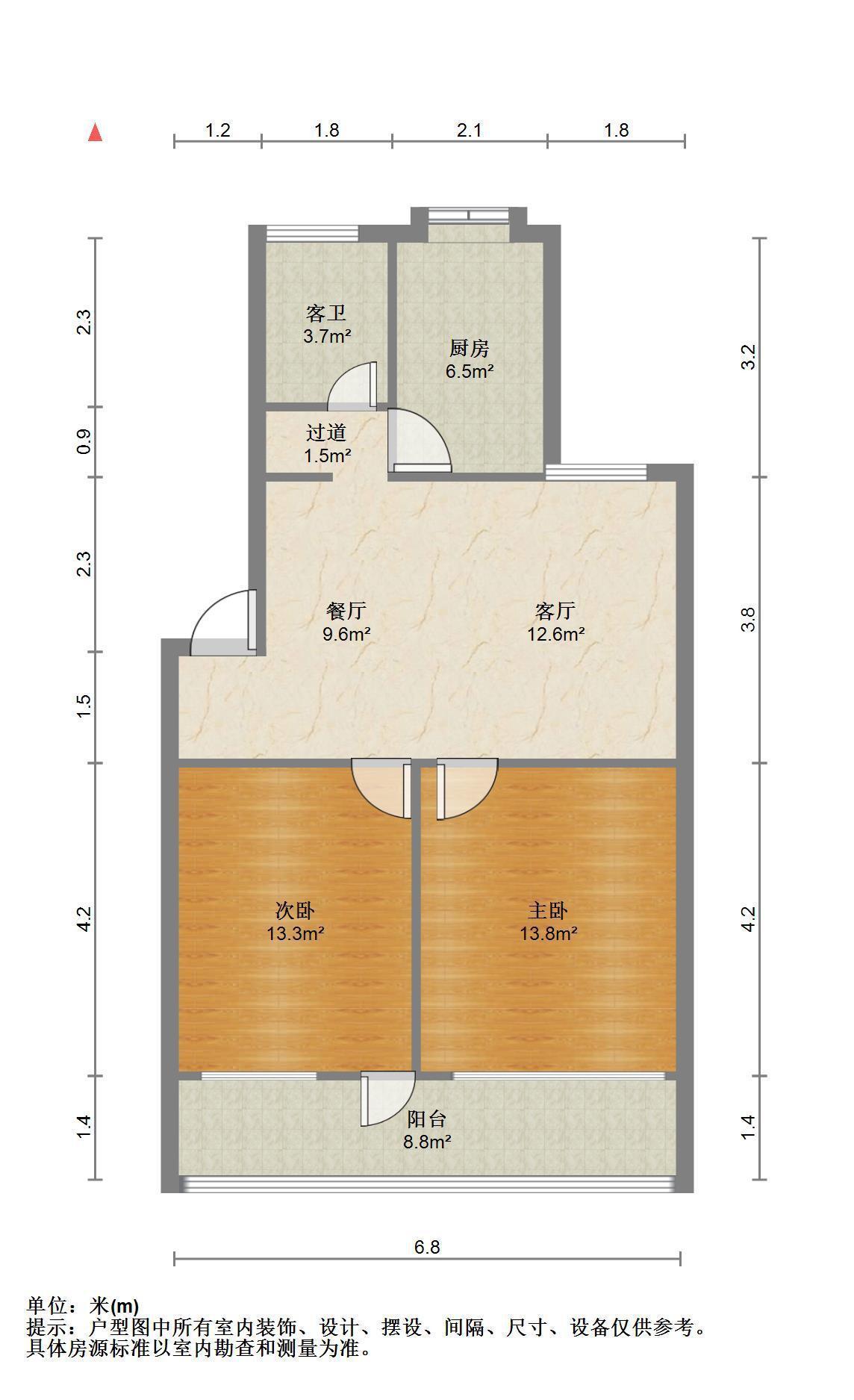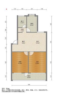 2室1厅1卫 面积68m²