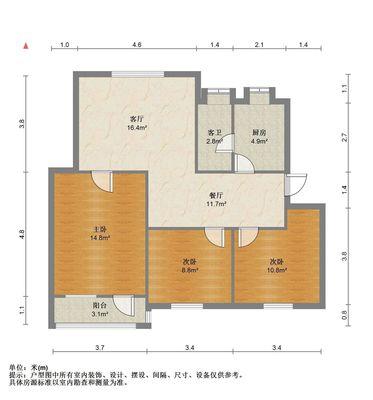3室2厅1卫 面积98m²