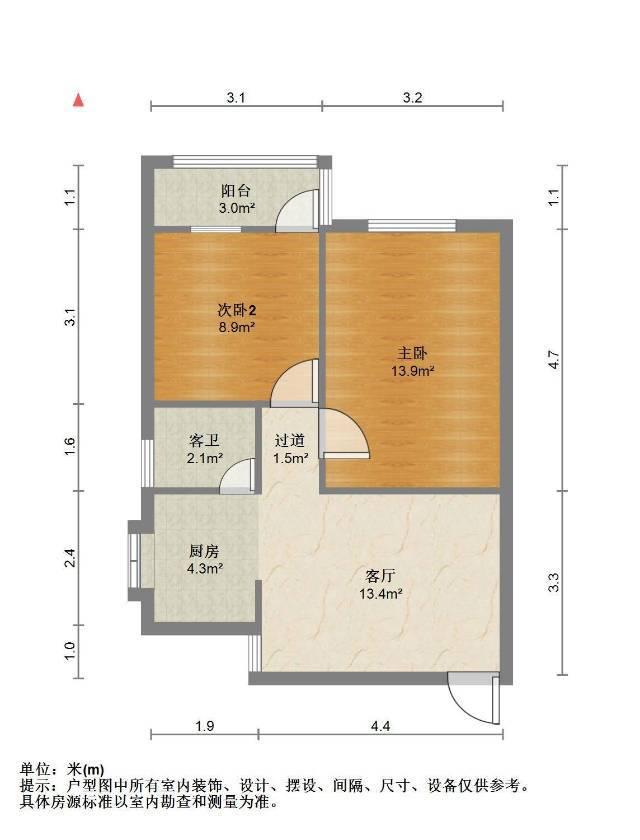 2室1厅1卫 面积61m²