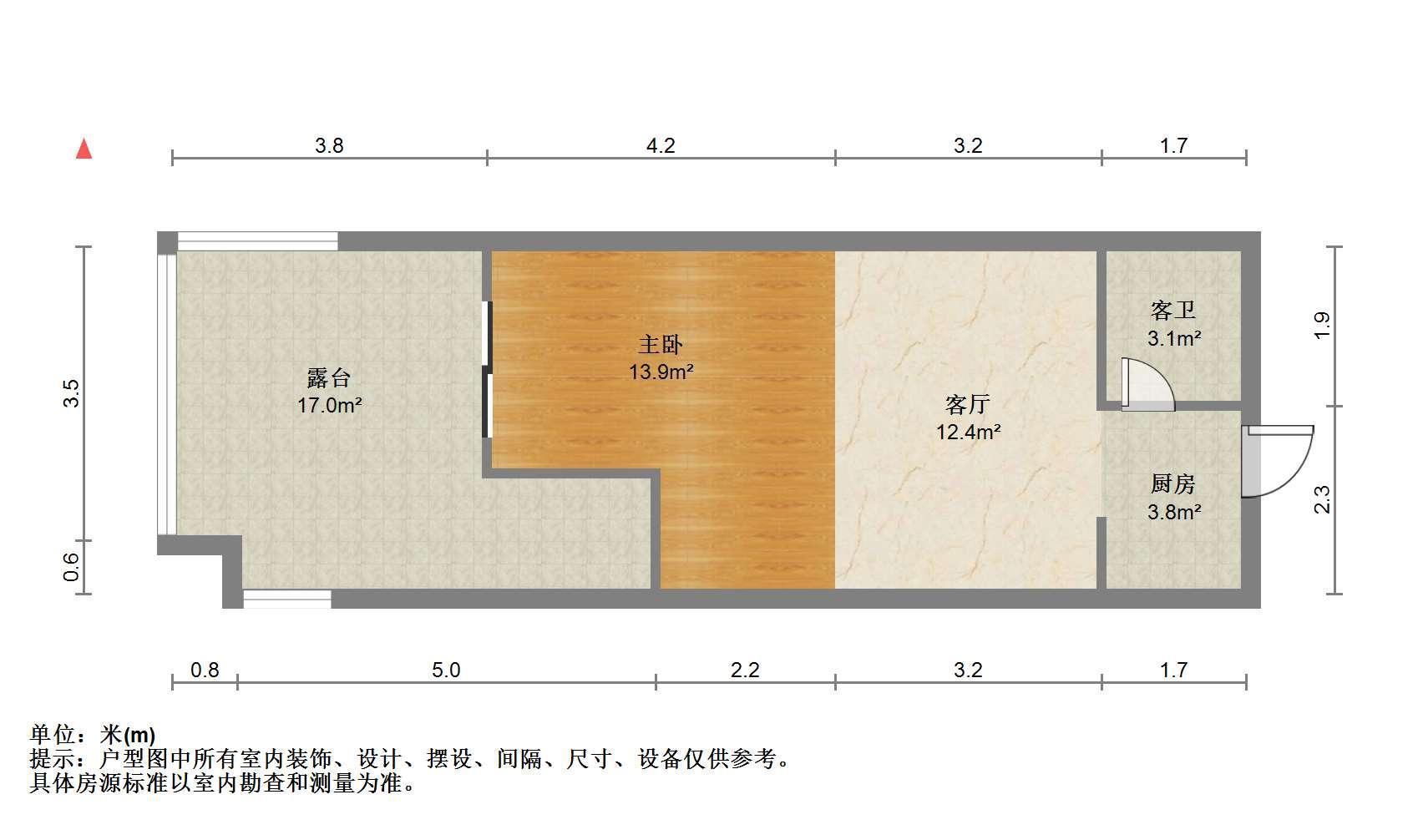 1室1厅1卫 面积51m²
