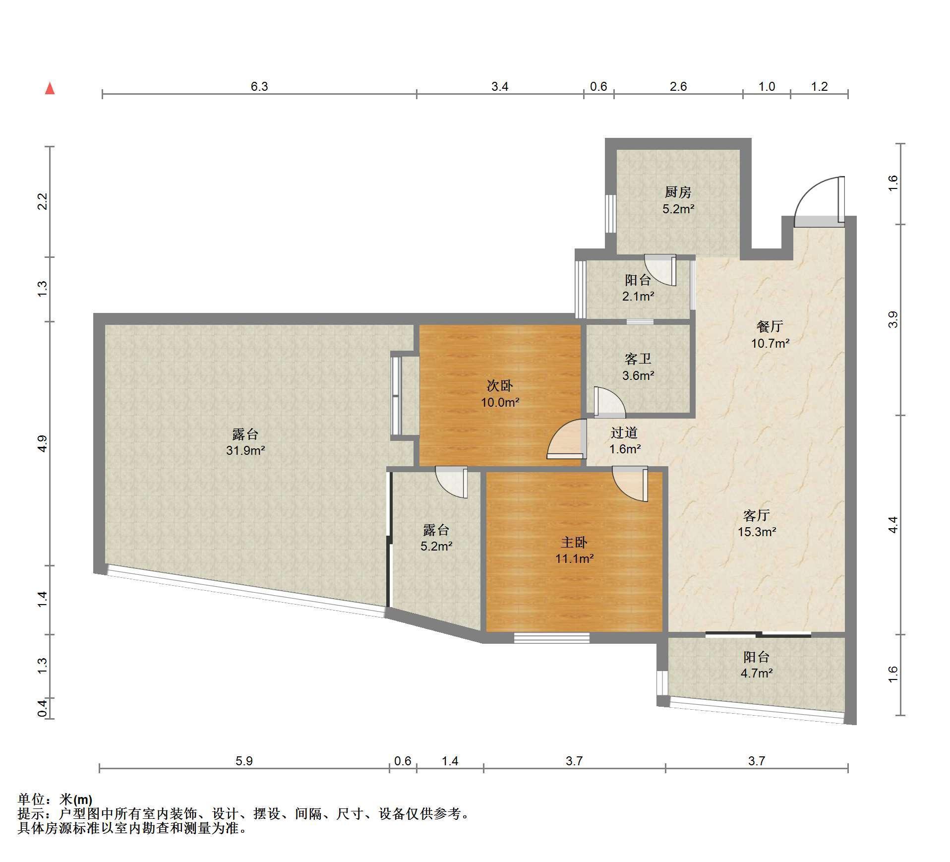 3室2厅1卫 面积118m²