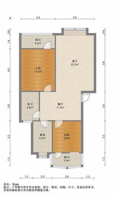 2室2厅1卫 面积110m²