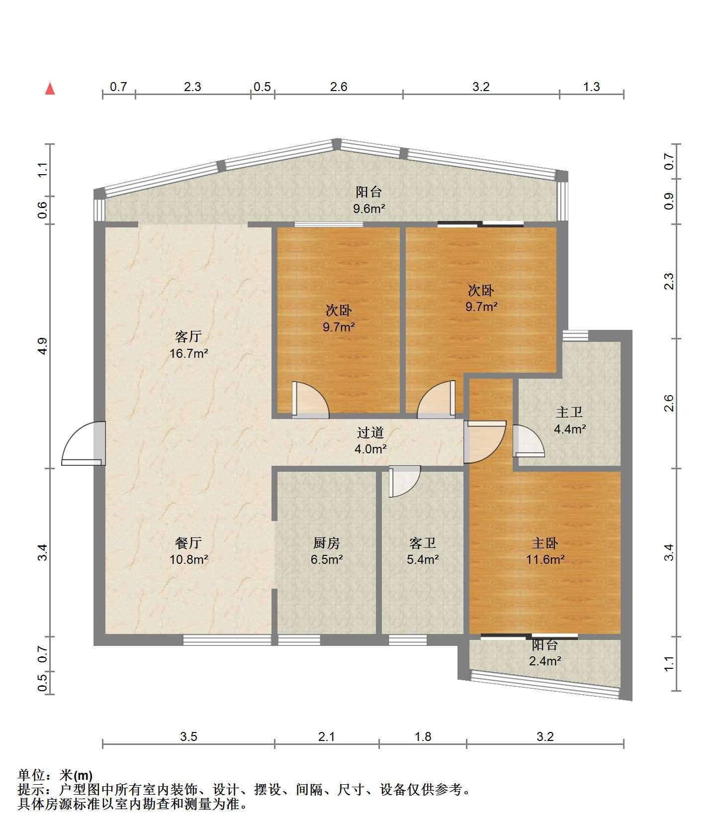 2室2厅1卫 面积83m²