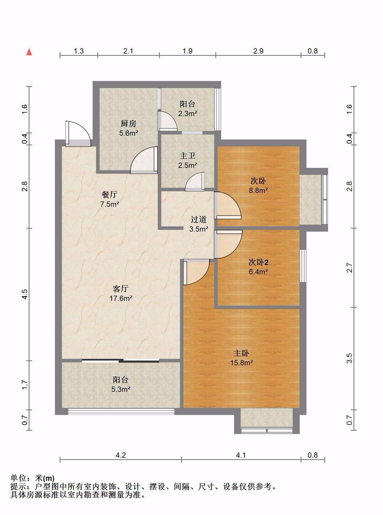 3室2厅1卫 面积88m²