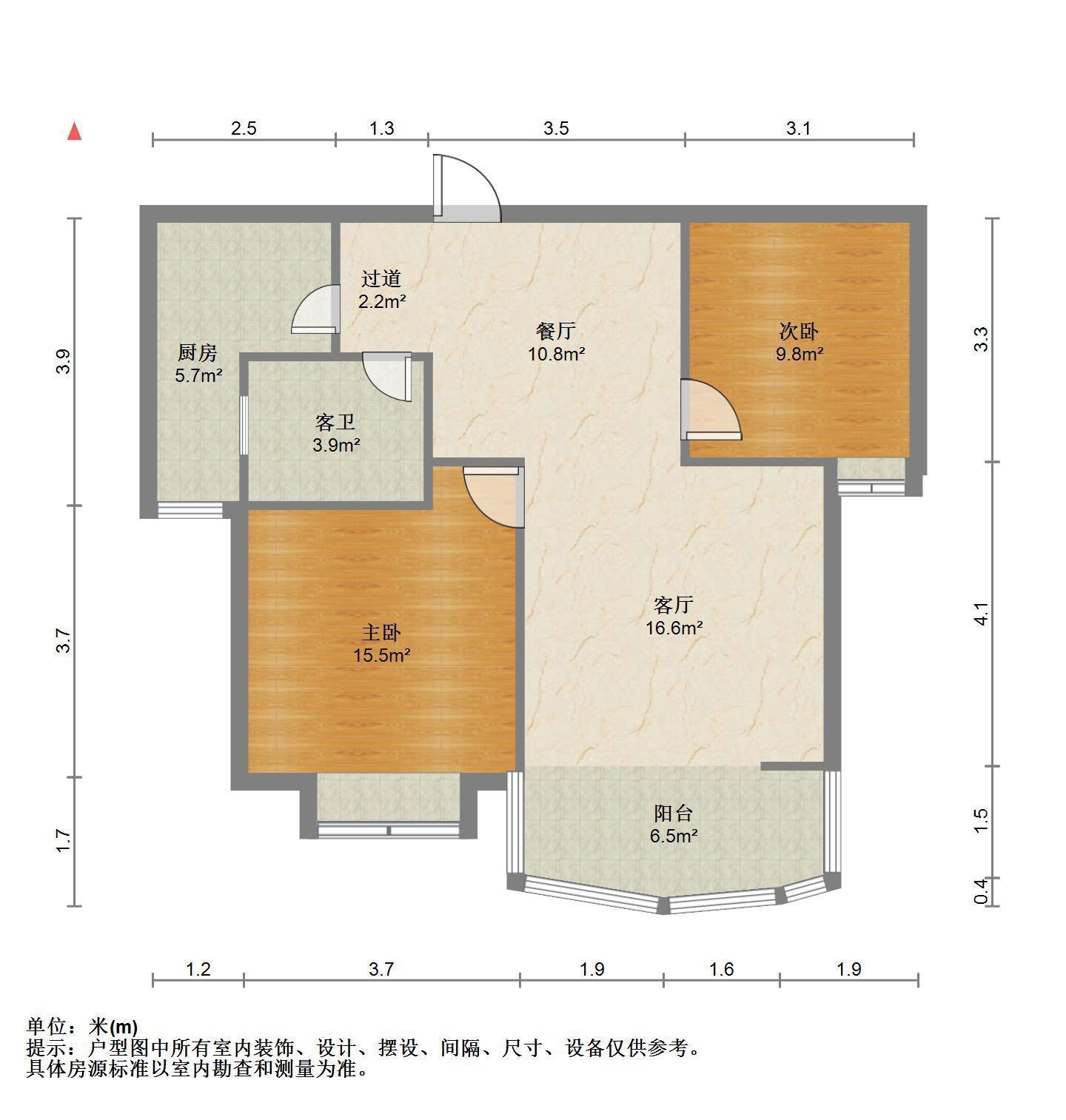 2室1厅1卫 面积65m²
