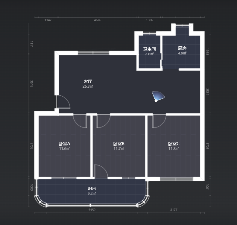 2室2厅1卫 面积66m² 2300元/月