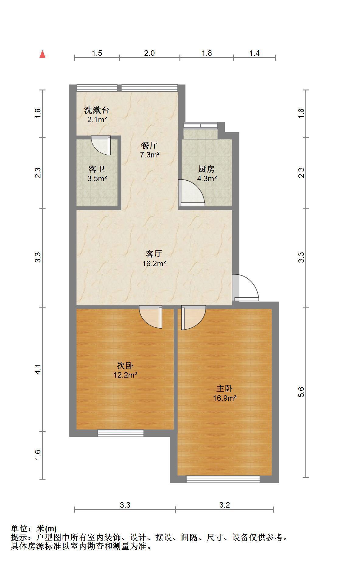 2室1厅1卫 面积60m²