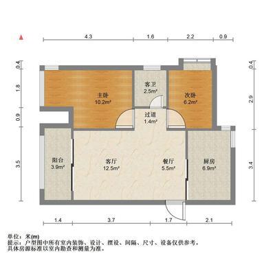 2室2厅1卫 面积59m²