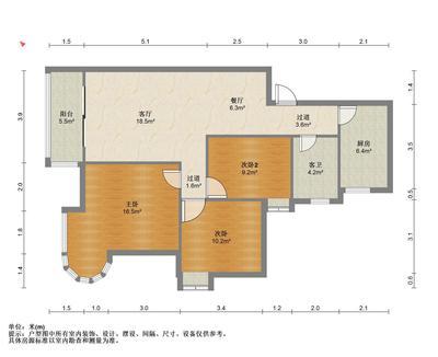 2室2厅1卫 面积66m² 2300元/月