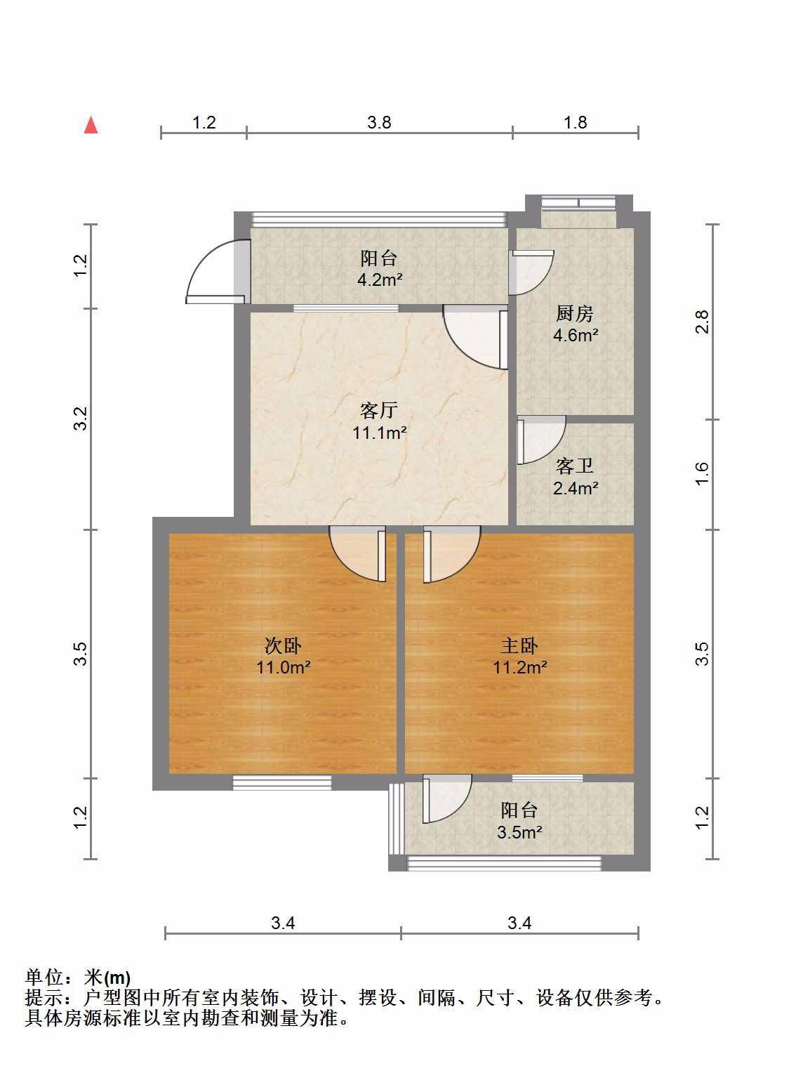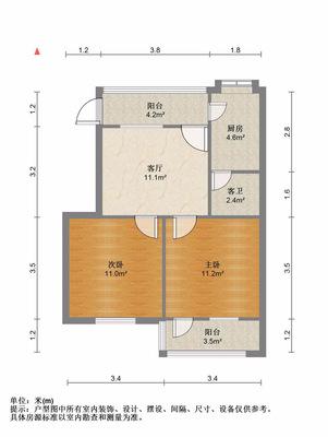 2室2厅1卫 面积59m²