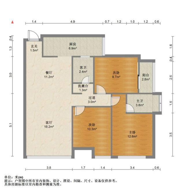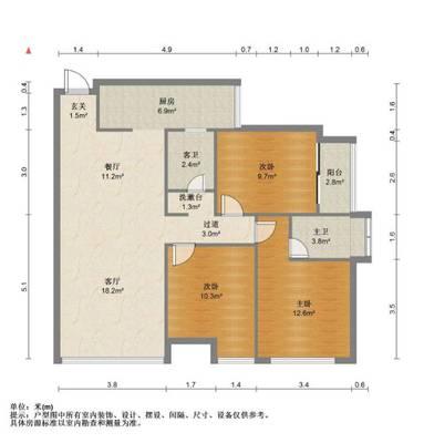 2室1厅2卫 面积56m²