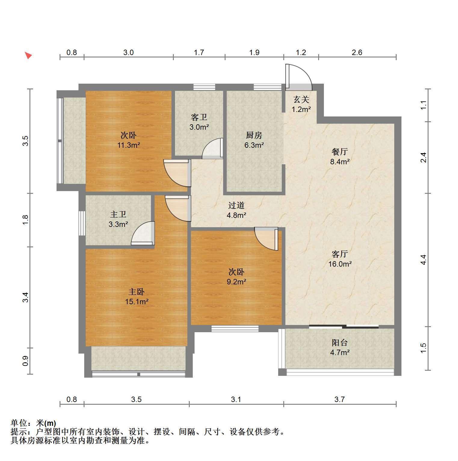 3室2厅2卫 面积101m²