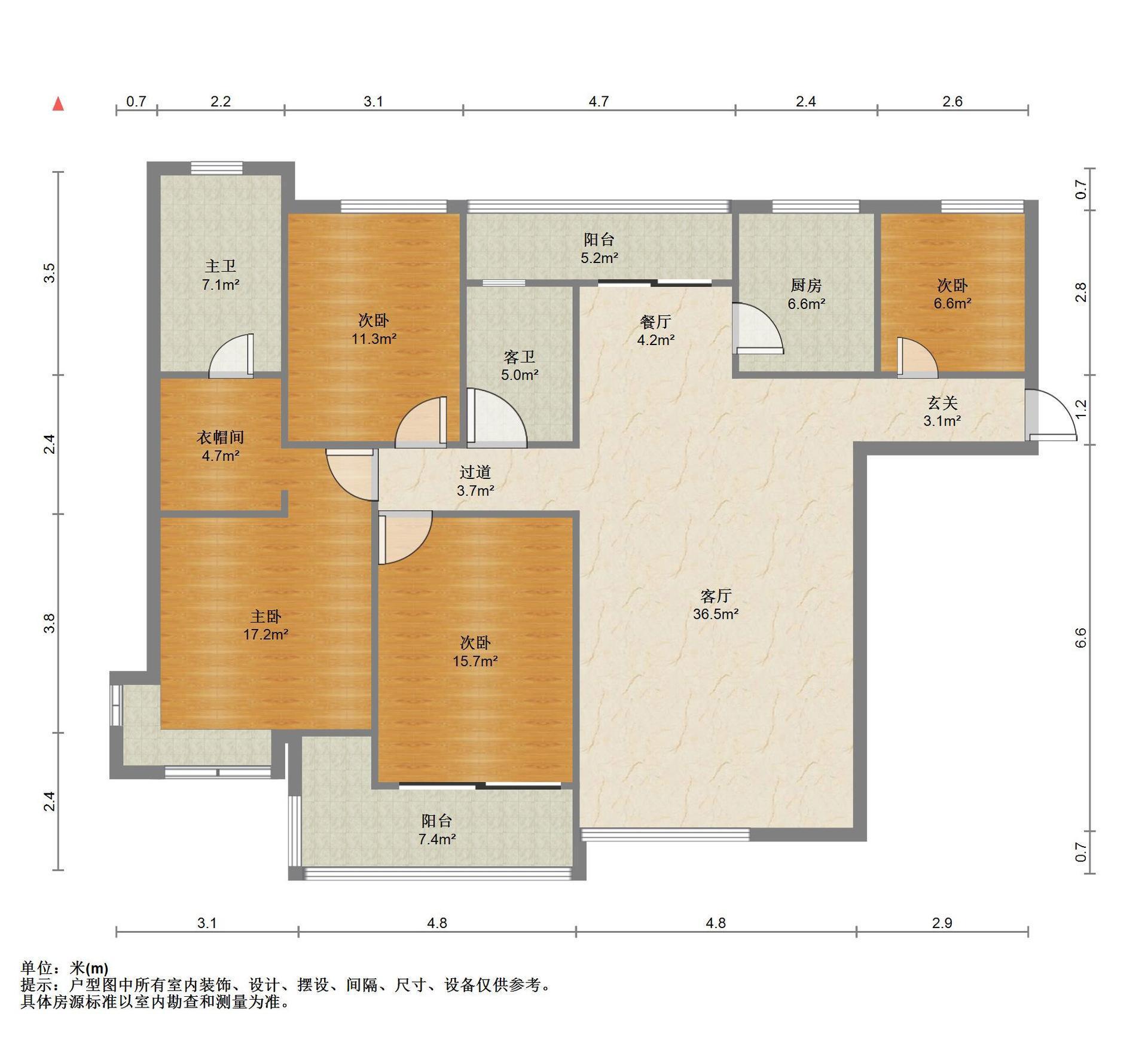 3室2厅2卫 面积122m²