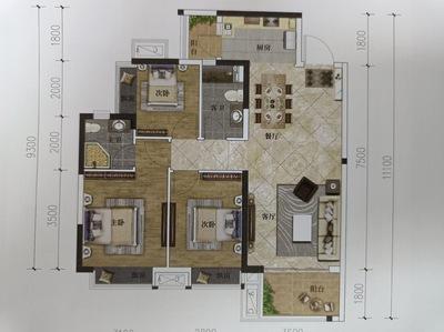 2室1厅1卫 面积66m² 1300元/月