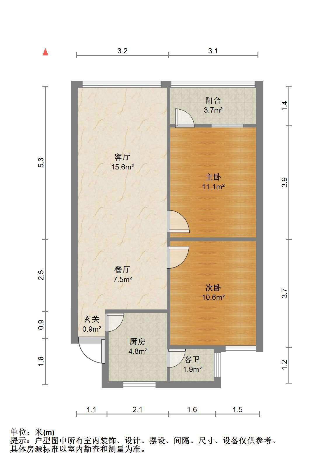 3室2厅1卫 面积99m²