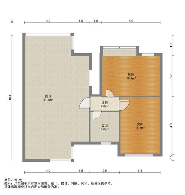 2室1厅1卫 面积55m²