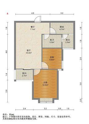 1室1厅1卫 面积47m² 1300元/月