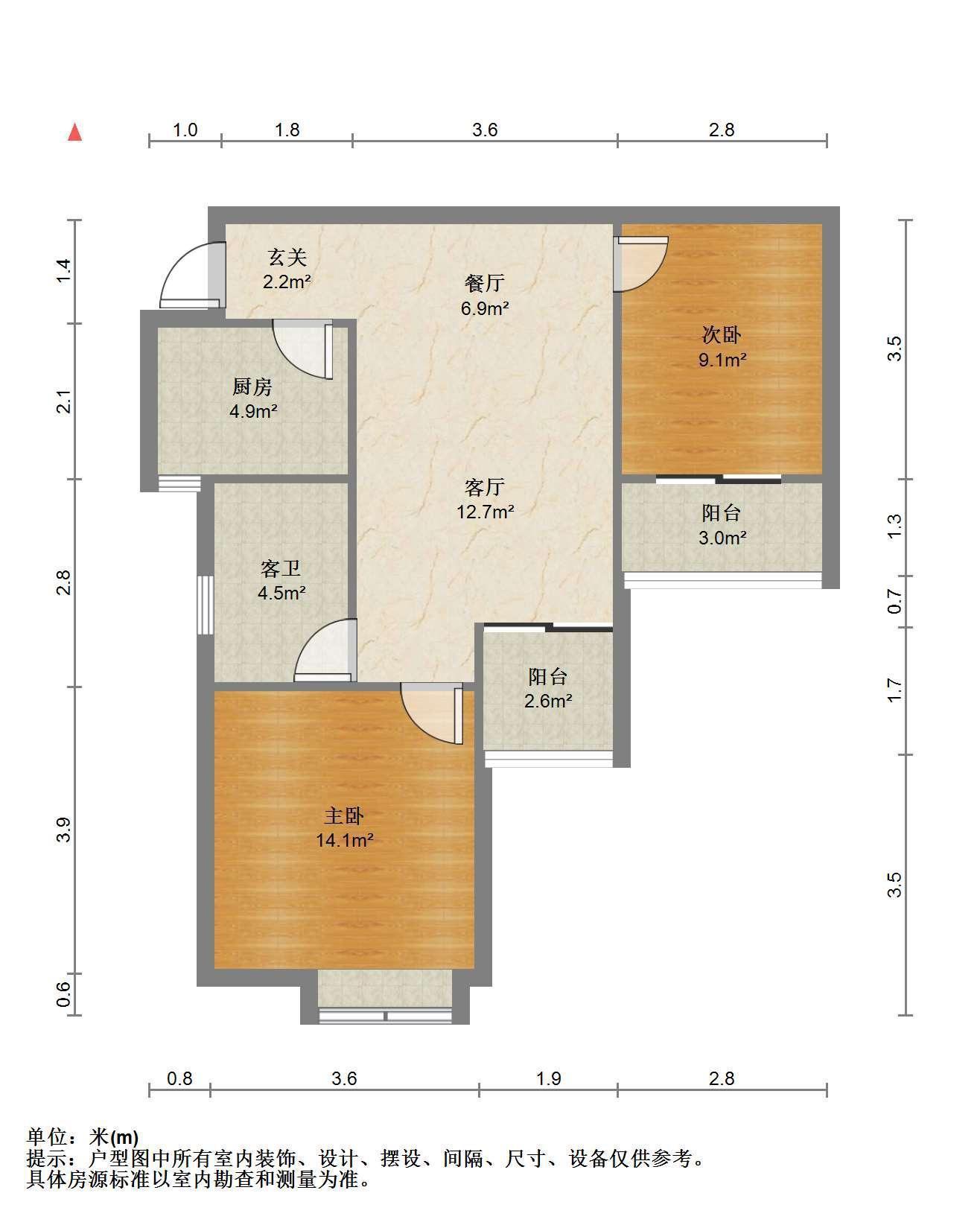3室2厅1卫 面积110m²
