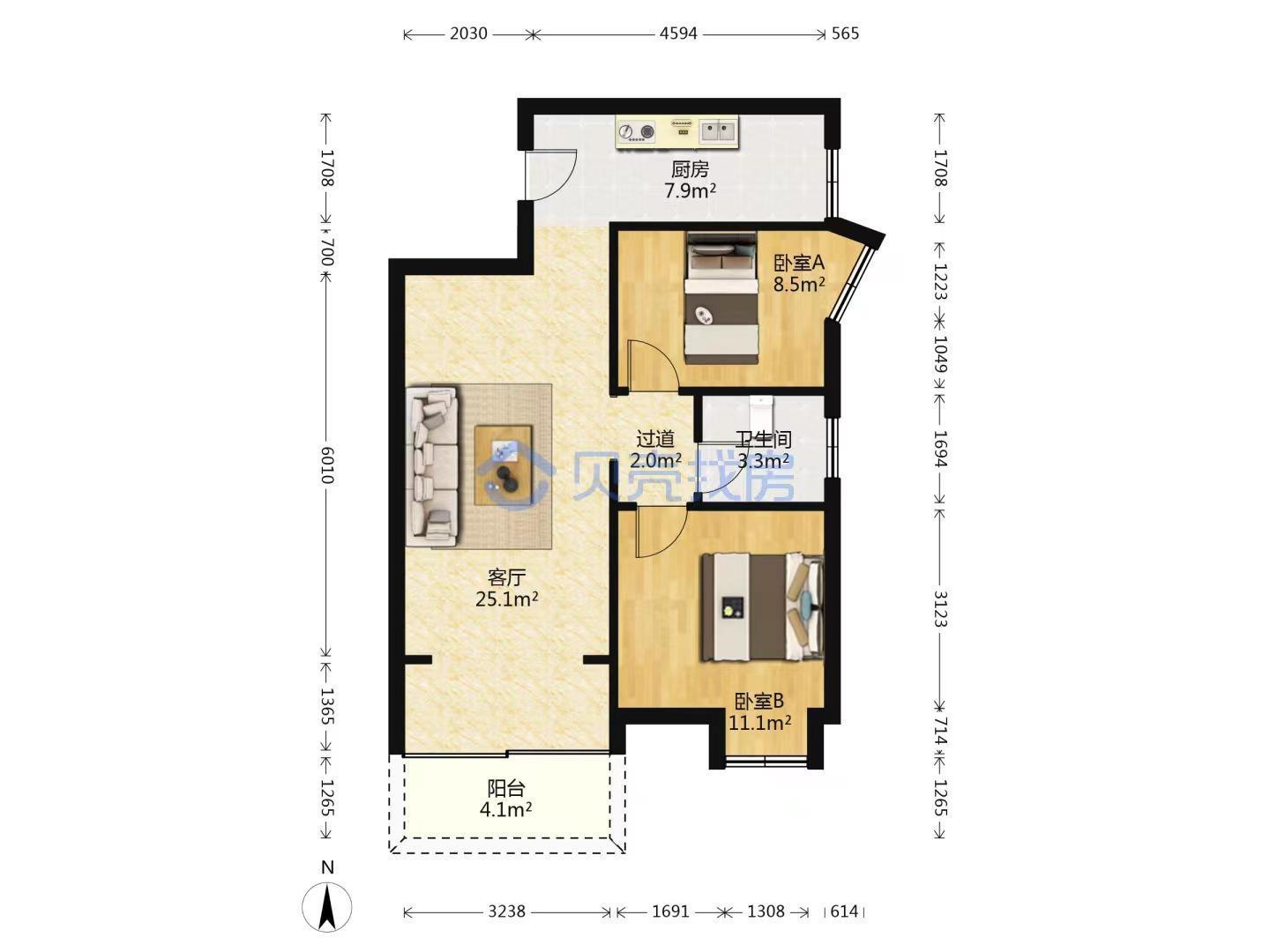 3室2厅2卫 面积115m²