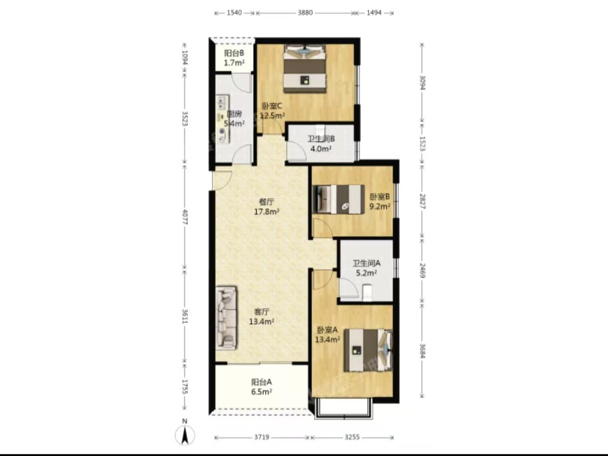 3室1厅1卫 面积106m²