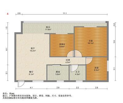 2室2厅1卫 面积82m²