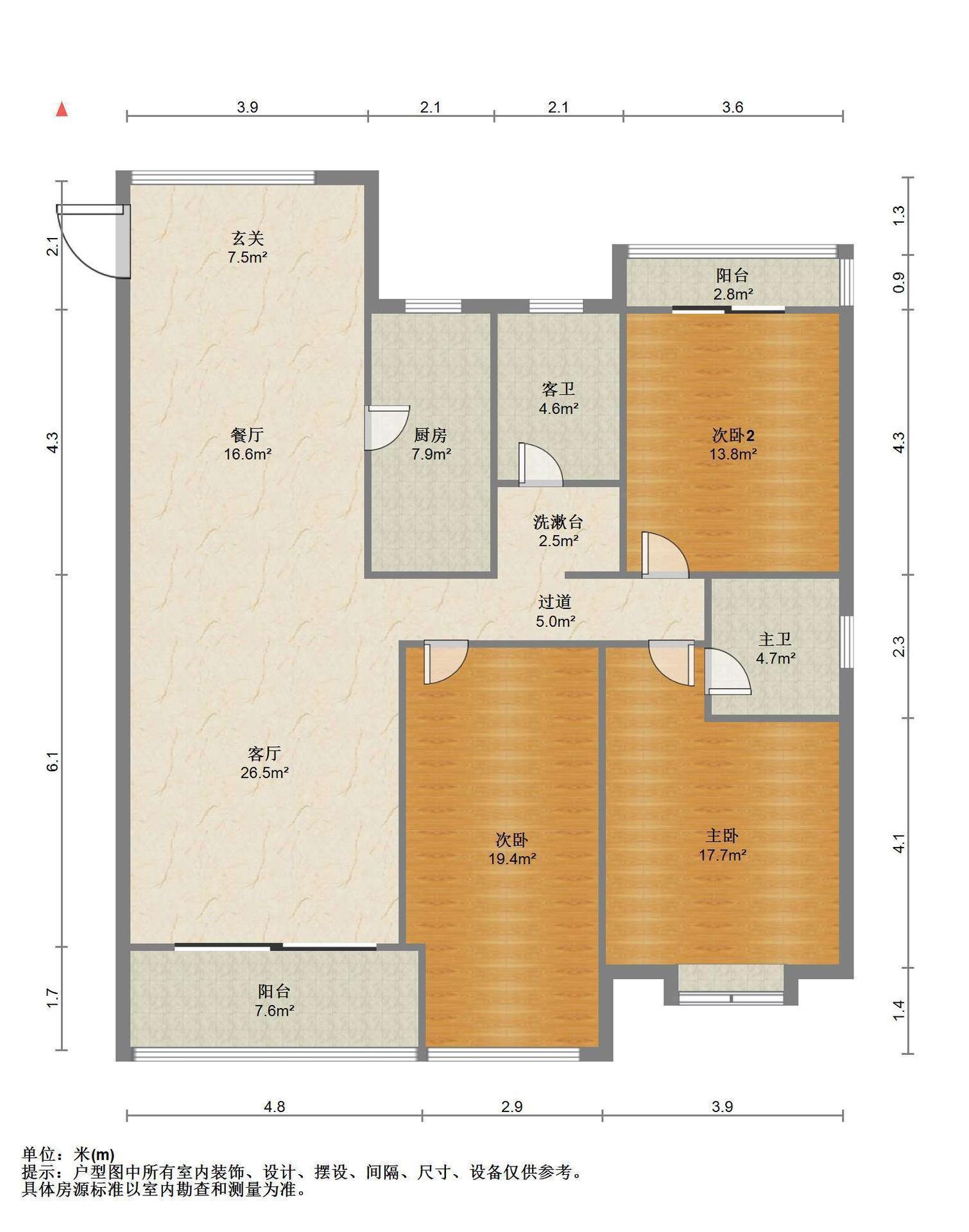 3室2厅2卫 面积128m²
