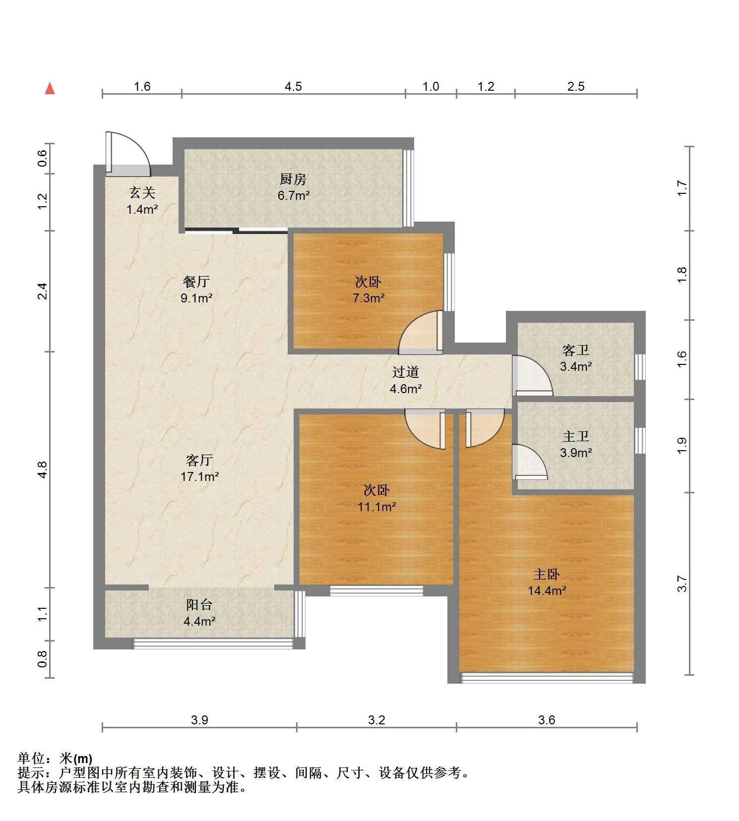 3室2厅2卫 面积89m²