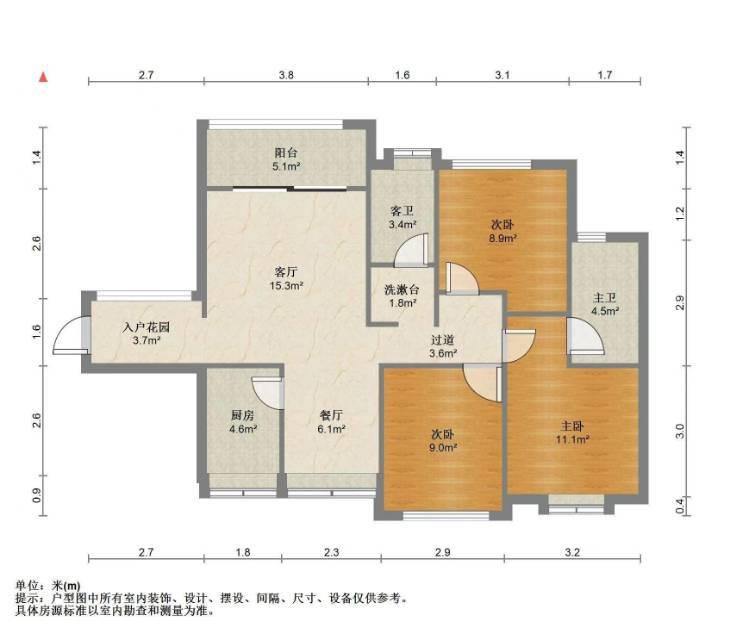 2室1厅2卫 面积56m²
