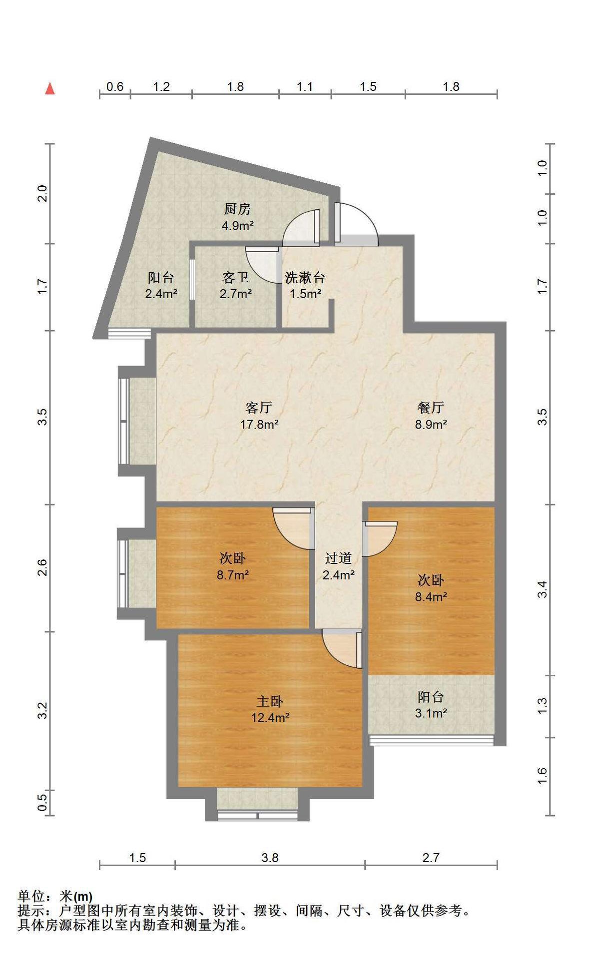 2室2厅1卫 面积72m²