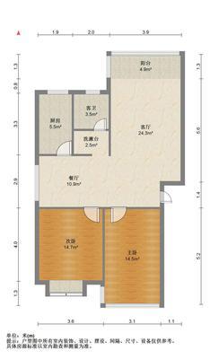 2室2厅1卫 面积66m² 2300元/月