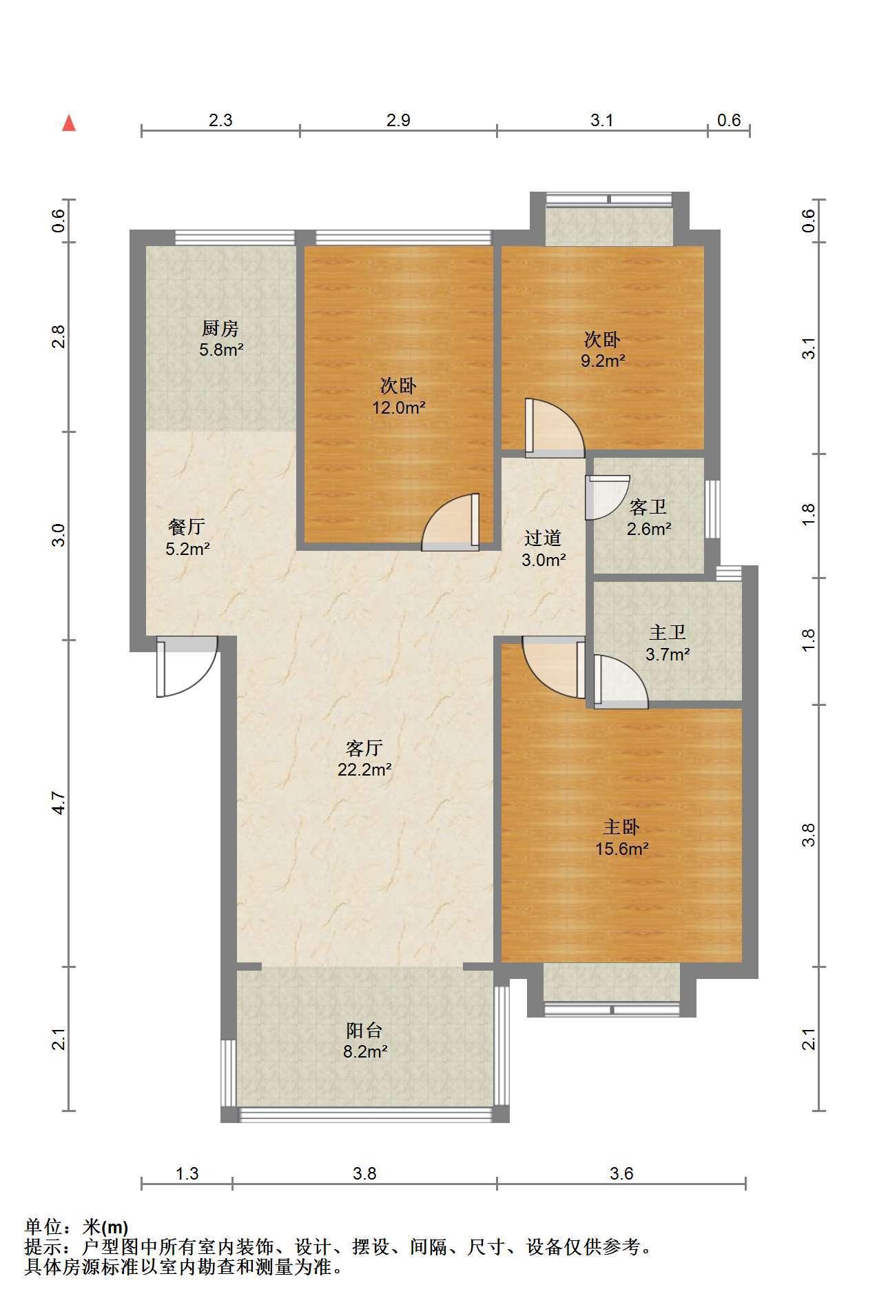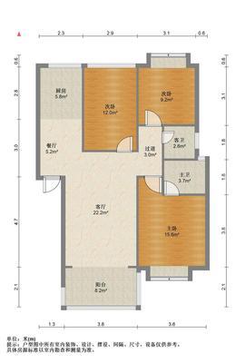 3室2厅2卫 面积122m²