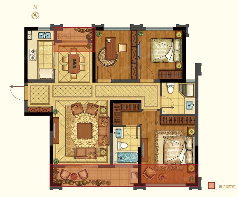 3室2厅2卫 面积142m²