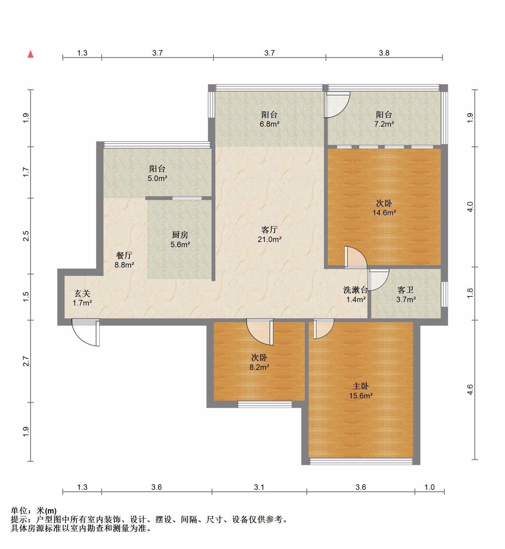 3室2厅1卫 面积98m²