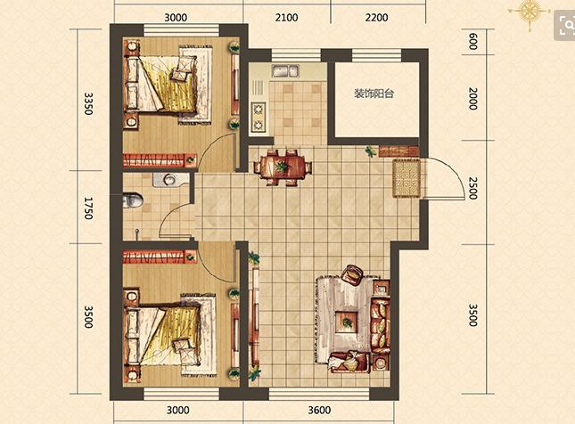 2室2厅1卫 面积86m²